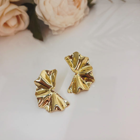 Boucles d’oreilles dorées chaîne et feuille – Acier inoxydable élégant et raffiné