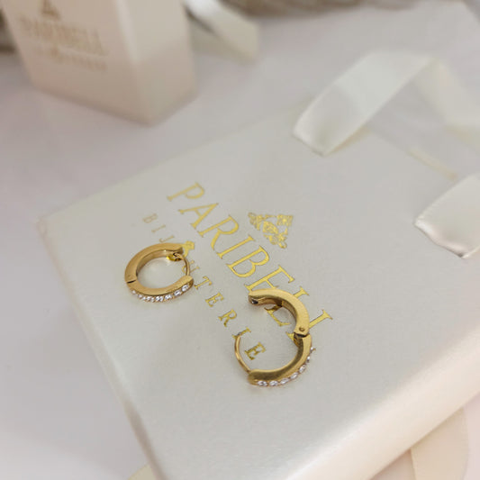 Boucles d’oreilles créoles dorées serties de zircons – Élégance intemporelle