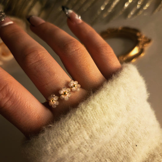 Bague femme acier inoxydable – résistante à l’eau, ajustable perles rose clair