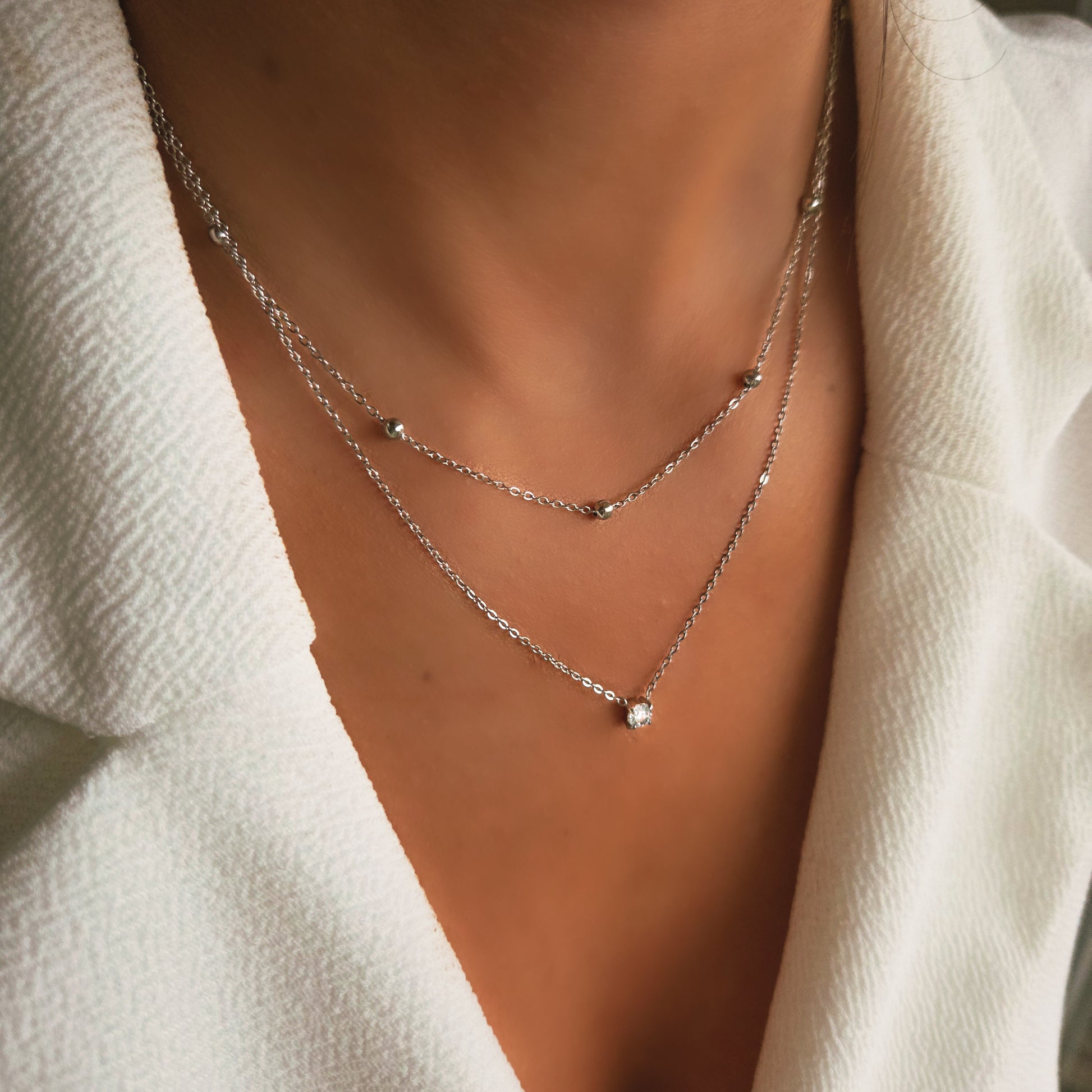 Collier double rang – Chaîne fine et pendentif zircon en acier inoxydable