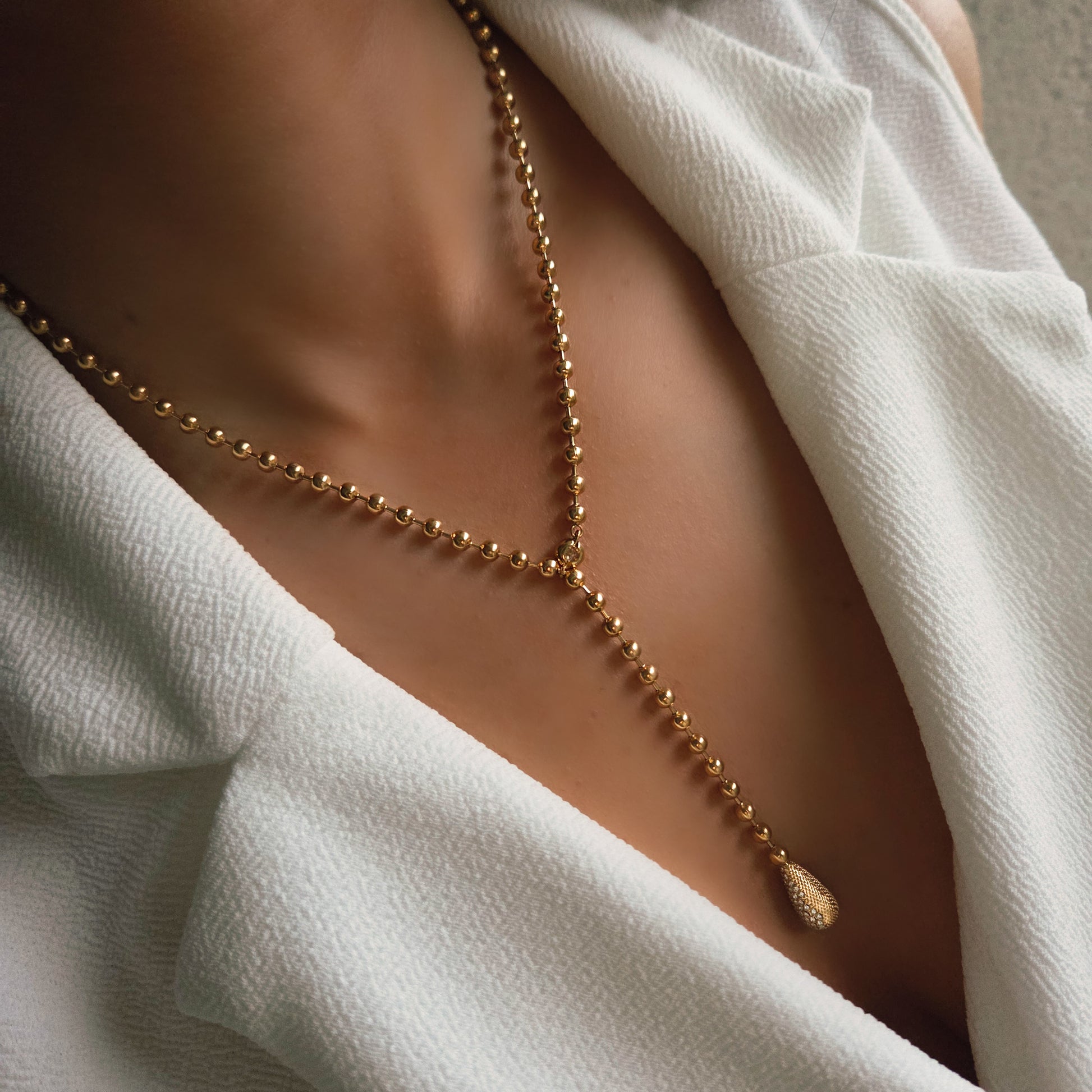 Collier Y en acier inoxydable doré